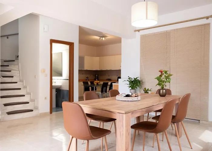 La villa Naelia Villa, de 120 m^2, está ubicada en Pastida, a 15 minutos andando de los Filerimos Cross y a 2 km de distancia de The Island Of Rhodes. Las instalaciones en la habitación de esta villa incluyen un balcón, TV de pantalla plana con canales vía satélite y climatizador.
